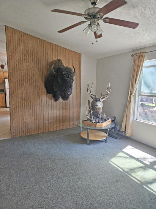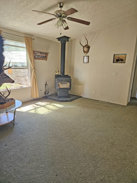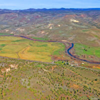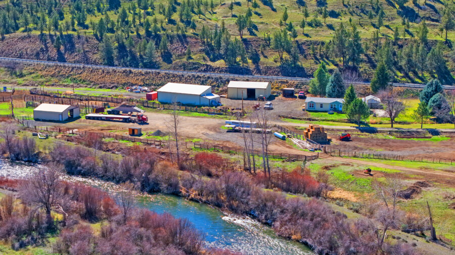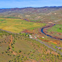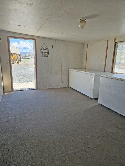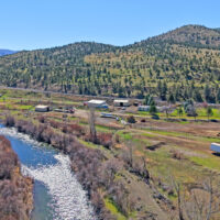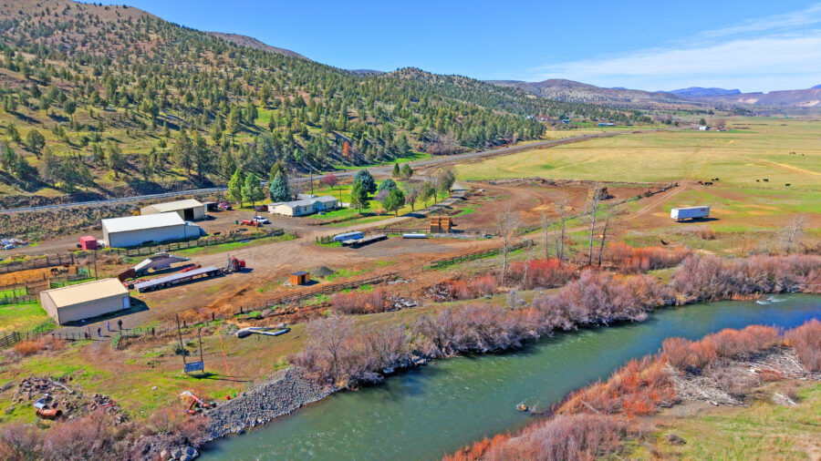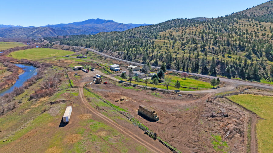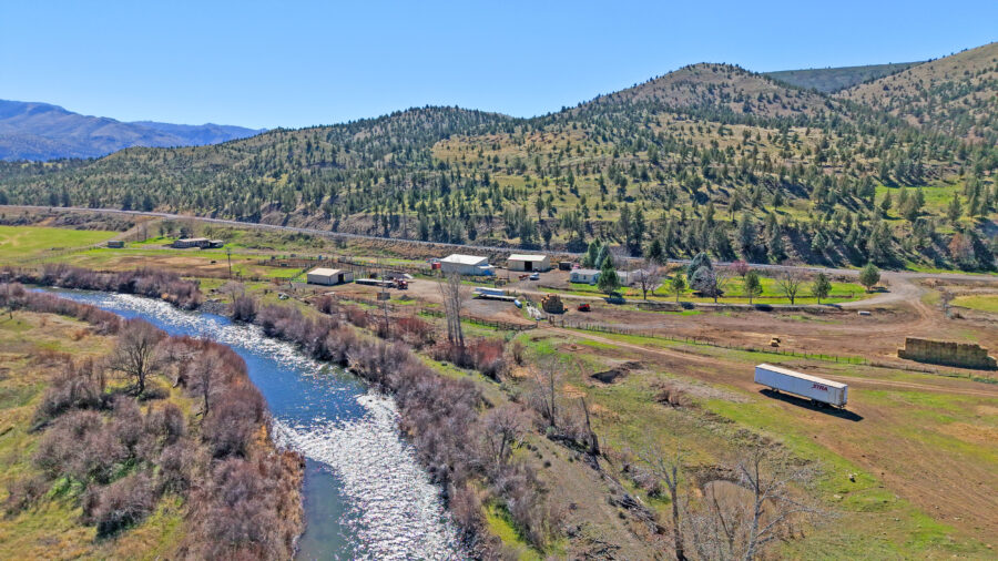The ranch is perimeter fenced with meadow pasture and is complete with cattle working facilities, portable chute, squeeze chute and calf table. Corral system has power and water with panels and pipe fencing underway. Barn has 3 stalls and hay storage, shop with concrete floor and shelving, water and wood stove. 3 bay machine shed houses three 20 HP pumps with one as backup, and has attached tack room/office area. 8×20 container convereted into meat cooler and out door fire pit is next to 1981 3 bedroom 2 bathroom Parkway MH. There are three wells, one for each home and the last for the corral system in a covered well house. Concrete pool pad is next to the 4 bedroom, 2 bathroom 2004 Goldenwest MH w/12×20 addition. Both manufactured homes are on separate tax lots, both with garden areas and easy access to the river for fishing and swimming. Beautiful views of Aldrich Mountain Range and Picture Gorge.